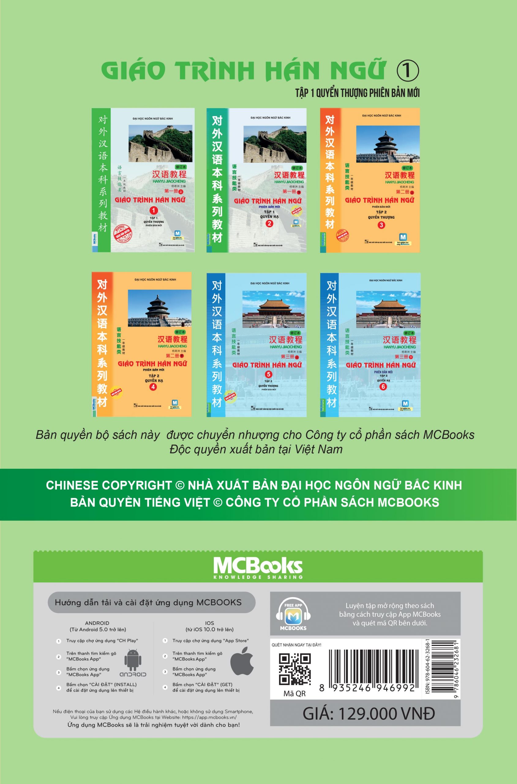 - Cuốn sách Giáo trình Hán ngữ tập 1 – Quyển Thượng (phiên bản mới) bao gồm 15 bài học, mỗi bài học bao gồm: bài khóa, từ mới, chú thích, ngữ pháp, ngữ âm và luyện tập những kiến thức đã học.