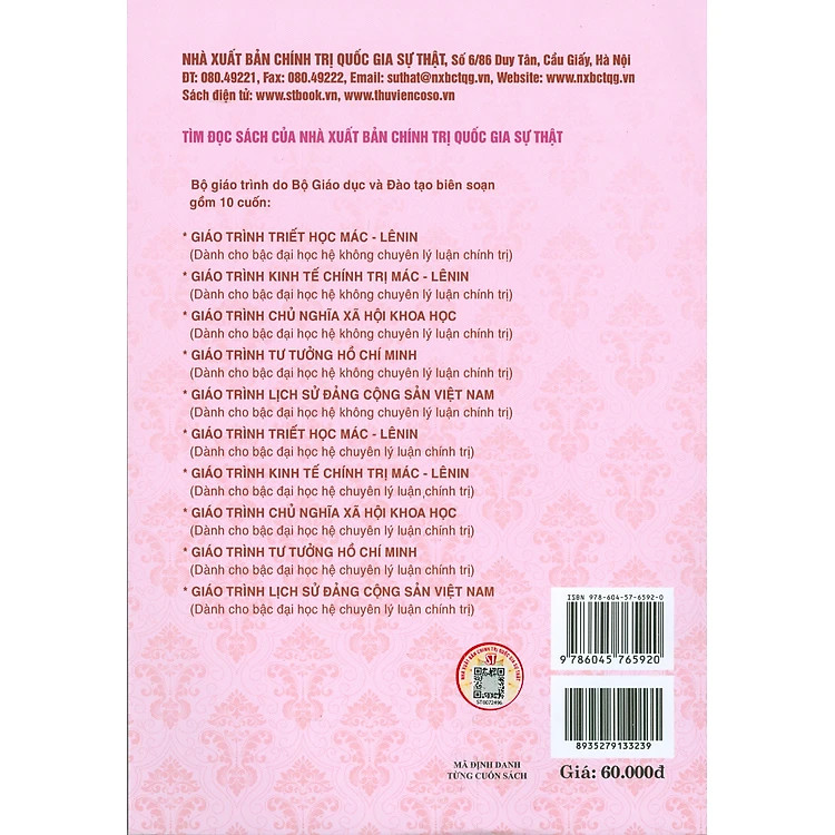 Bộ sách là tài liệu giảng dạy, học tập cho giảng viên, sinh viên các trường đại học theo chương trình mới do Bộ Giáo dục và Đào tạo và Nhà xuất bản Chính trị Quốc gia xuất bản.