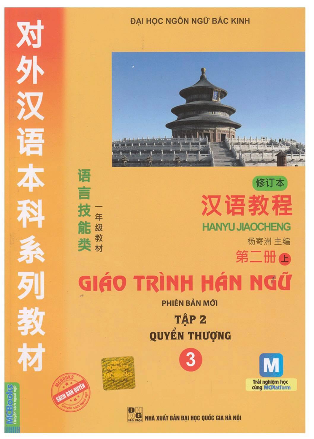 Giáo trình Hán ngữ 2 – Tập 1 quyển hạ phiên bản mới 2025 Bộ sách gồm 6 cuốn, được chia thành 3 tập (tập 1, tập 2, tập 3), mỗi tập lại chia thành quyển thượng và quyển hạ. Sau khi hoàn thành Giáo trình Hán Ngữ 1 – Tập 1, người học sẽ tiếp tục với quyển hạ của Giáo trình Hán Ngữ 2 để nâng cao khả năng tiếng Trung của mình. Mục Lục Nội dung của Giáo trình Hán Ngữ 2 – Tập 1 – Quyển Hạ – Phiên Bản Mới Điểm nổi bật của Giáo trình Hán Ngữ 2 – Tập 1 – Quyển Hạ – Phiên Bản Mới Giáo trình Hán Ngữ 2 – Tập 1 – Quyển Hạ – Phiên Bản Mới dành cho những ai? Cuốn sách Giáo trình Hán Ngữ 2 – Tập 1 – Quyển Hạ – Phiên Bản Mới giúp người học giải quyết khó khăn gì? Nội dung của Giáo trình Hán Ngữ 2 – Tập 1 – Quyển Hạ – Phiên Bản Mới Tập 2 của Giáo trình Hán Ngữ 2 bao gồm 15 bài học với các chủ đề phong phú, phản ánh những tình huống thực tế trong cuộc sống như: học tập, sinh hoạt hàng ngày, mua sắm, ăn uống, và nhiều lĩnh vực khác. Mỗi bài học được chia thành 5 phần: Bài khóa Từ mới Chú thích Ngữ pháp, ngữ âm Luyện tập Mỗi phần đều cung cấp kiến thức hữu ích, vì vậy để đạt hiệu quả tối ưu, người học nên theo trình tự từ phần 1 đến phần 5 trong mỗi bài, tránh bỏ qua bất kỳ phần nào để có thể tiếp thu đầy đủ và dễ dàng áp dụng vào thực tế. Nội dung bài học Giáo trình Hán Ngữ 2 – Tập 1 – Quyển Hạ – Phiên bản mới Điểm nổi bật của Giáo trình Hán Ngữ 2 – Tập 1 – Quyển Hạ – Phiên Bản Mới Lượng từ vựng phong phú: Mỗi bài học cung cấp từ 30–40 từ vựng, giúp người học mở rộng vốn từ một cách nhanh chóng. Ngữ pháp nâng cao: So với Tập 1, Tập 2 nâng cao mức độ ngữ pháp và từ vựng, giúp bạn chuẩn bị tốt hơn cho kỳ thi HSK cấp 2. Phát âm chuẩn: Sách tập trung vào việc luyện phát âm chuẩn với file nghe từ giảng viên bản xứ. Cấu trúc bài học khoa học: Mỗi bài học gồm bài khóa, từ mới, chú thích, ngữ pháp và luyện tập, giúp bạn tiếp thu kiến thức một cách dễ dàng và hiệu quả. Luyện viết chữ Hán: Các bài học cung cấp bảng luyện viết chữ Hán giúp bạn nắm vững các nét chữ và viết đúng chuẩn. Mục lục Giáo trình Hán Ngữ 2 – Tập 1 – Quyển Hạ – Phiên bản mới Giáo trình Hán Ngữ 2 – Tập 1 – Quyển Hạ – Phiên Bản Mới dành cho những ai? Người học tiếng Trung ở mức độ sơ cấp: Cuốn sách phù hợp với những ai đã hoàn thành Giáo trình Hán Ngữ 1 và muốn nâng cao trình độ tiếng Trung. Học sinh, sinh viên chuẩn bị thi HSK cấp 2: Giáo trình giúp ôn luyện ngữ pháp, từ vựng để đạt kết quả cao trong kỳ thi HSK cấp 2. Người học tự học tiếng Trung: Cuốn sách cung cấp phương pháp học khoa học, giúp bạn học tự tin và hiệu quả. Cuốn sách Giáo trình Hán Ngữ 2 – Tập 1 – Quyển Hạ – Phiên Bản Mới giúp người học giải quyết khó khăn gì? Khó khăn trong việc tự học tiếng Trung Cuốn sách cung cấp hệ thống bài học khoa học, từ phát âm đến giao tiếp thực tế, giúp bạn dễ dàng tự học mà không cần đến sự hướng dẫn trực tiếp. Hạn chế về ngữ pháp và từ vựng Cuốn sách cung cấp hệ thống ngữ pháp chi tiết với các cấu trúc câu dễ hiểu, cùng với 372 từ vựng quan trọng, giúp bạn phát triển khả năng giao tiếp tự tin trong mọi tình huống. Phát triển đồng đều 4 kỹ năng Nghe – Nói – Đọc – Viết Cuốn sách được thiết kế để giúp bạn rèn luyện đầy đủ 4 kỹ năng qua các bài tập thực hành, từ việc nghe và nói qua file nghe bản xứ đến việc đọc và viết các ký tự Hán chuẩn.