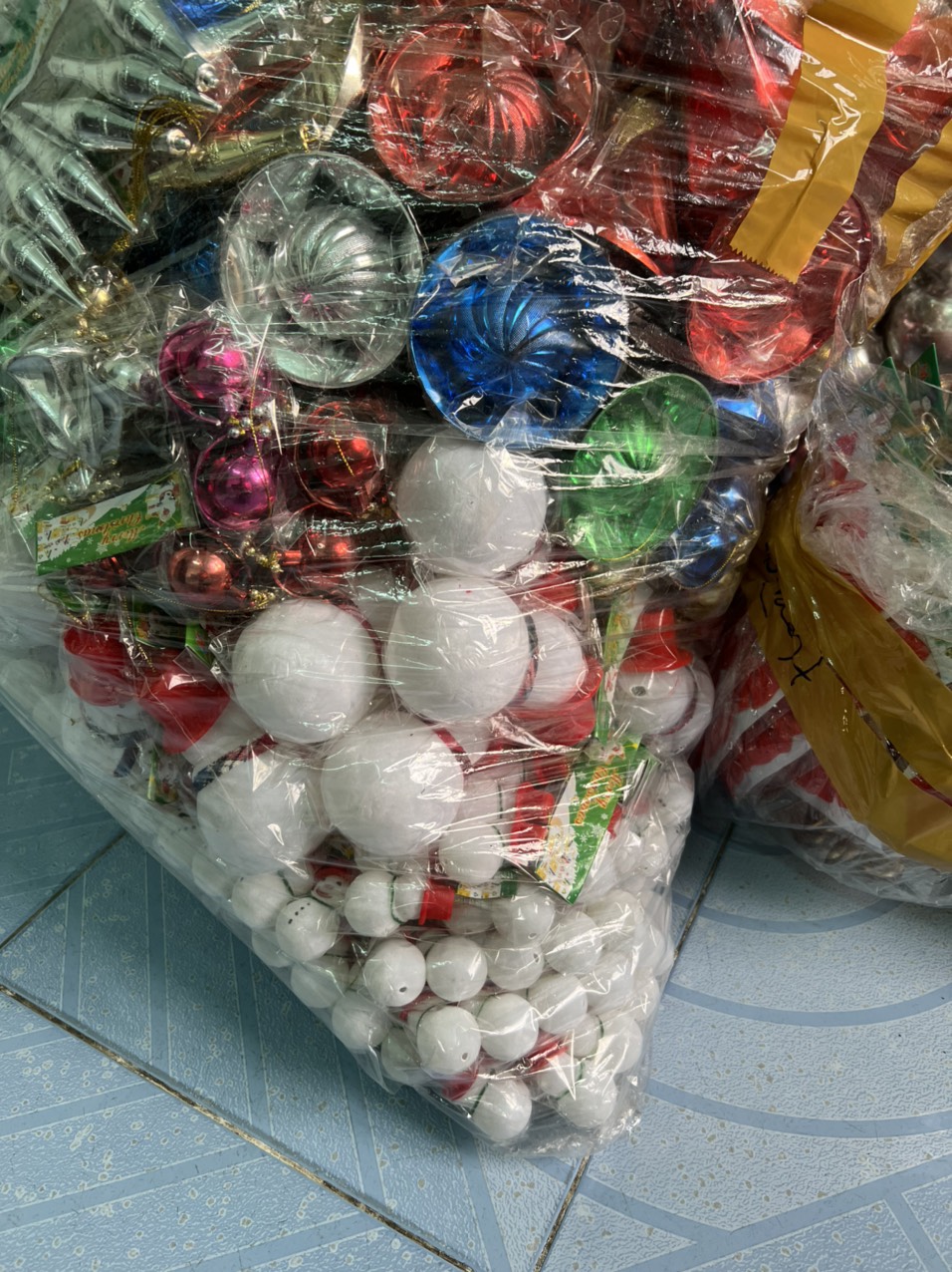 Phụ kiện trang trí cây thông của công ty chúng tôi là sản phẩm cao cấp bằng nhựa sạch và an toàn