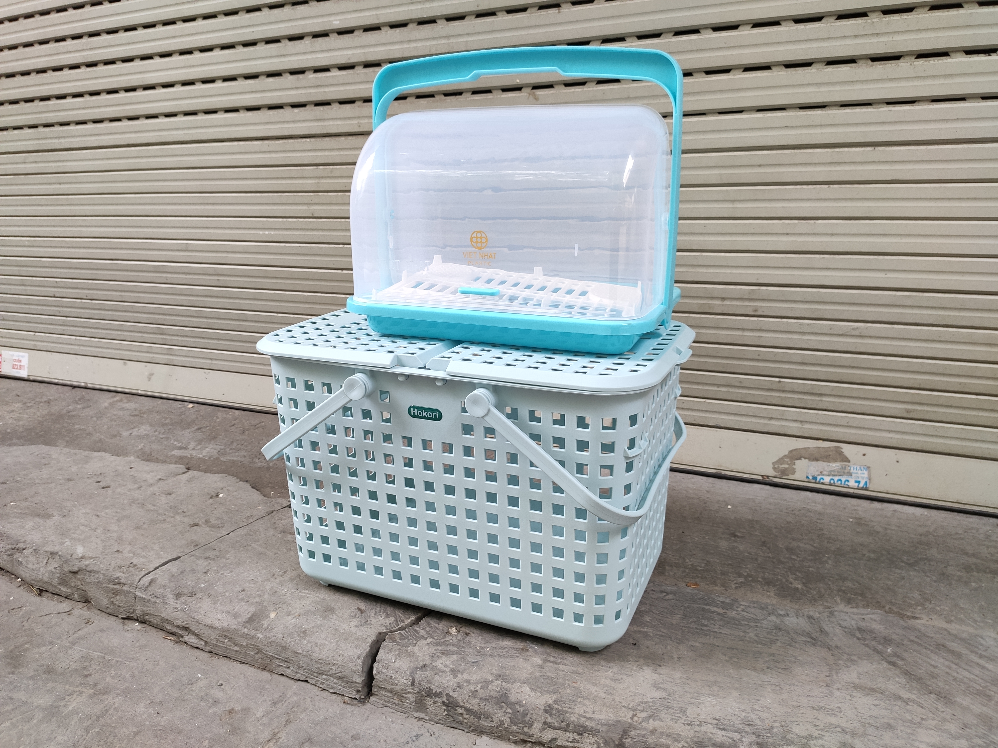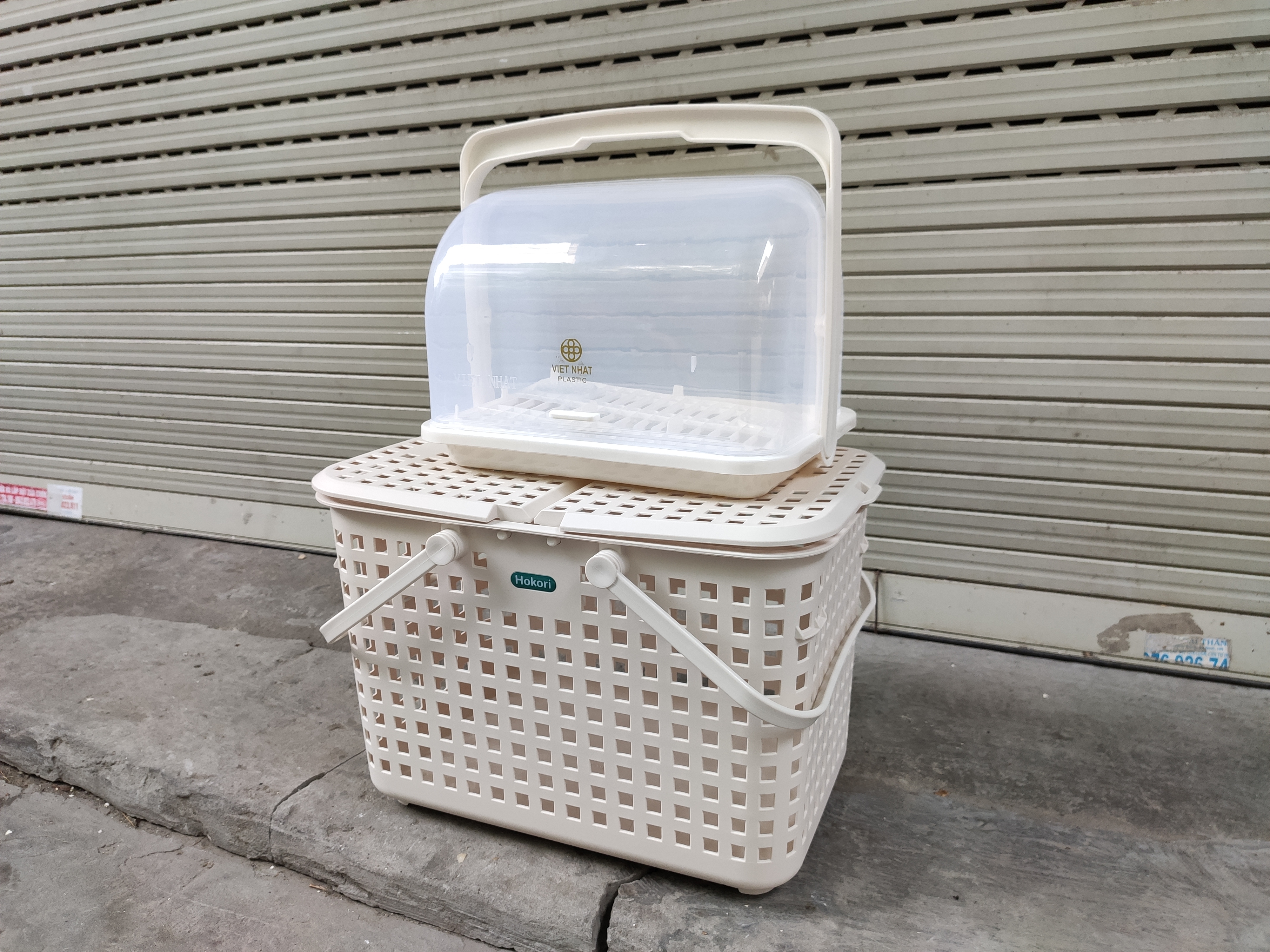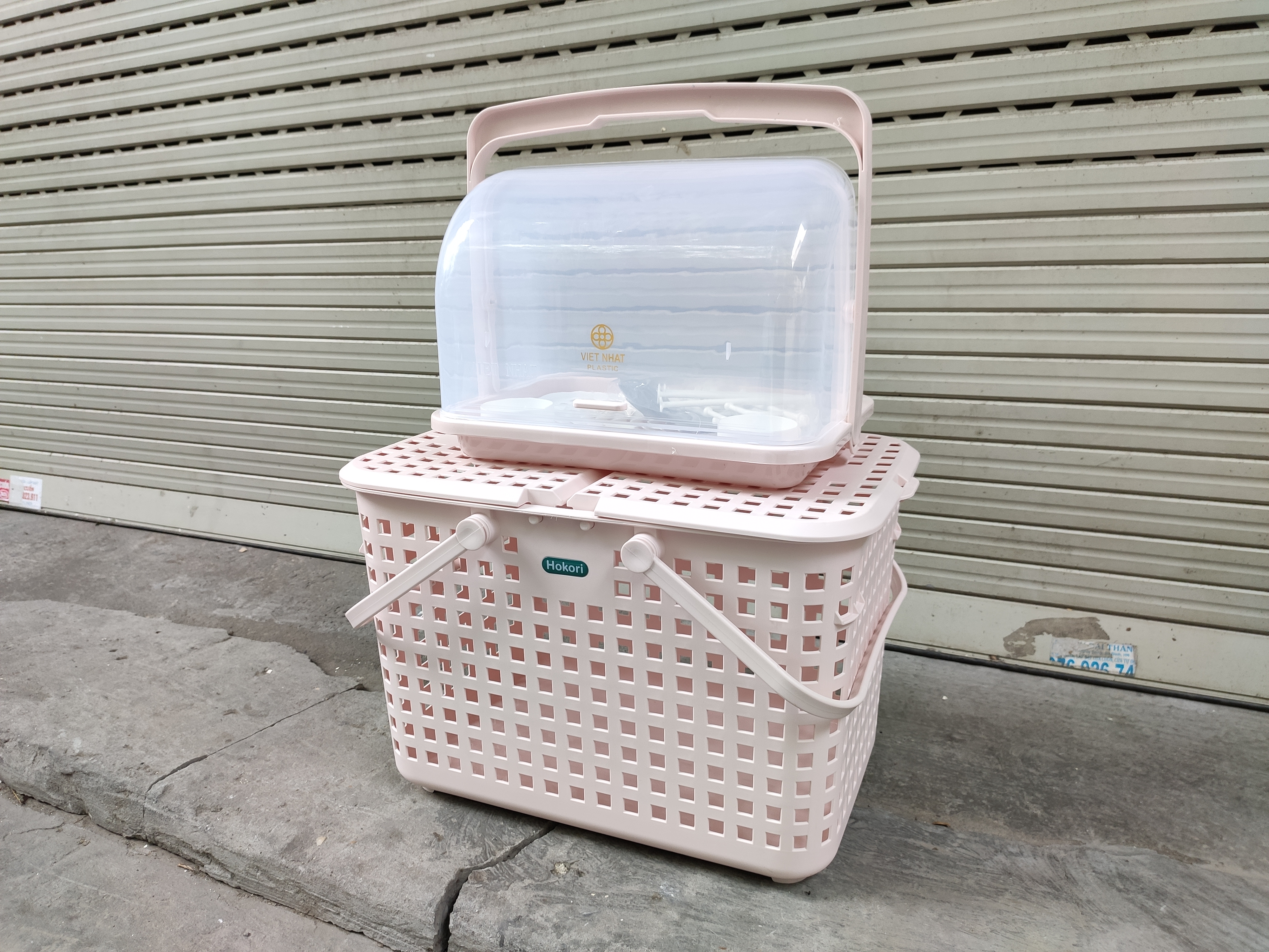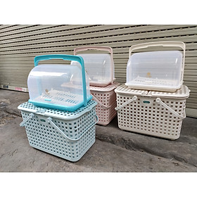 ✨Combo khay kệ úp bình sữa và Giỏ làn đựng đồ đi sinh cho mẹ và bé bằng nhựa cao cấp quai giữa có nắp đậy Hàn Quốc