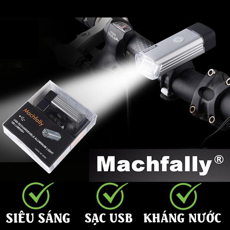 Đèn pha cho xe đạp dùng pin sạc, có thể sạc lại bằng cách cắm vào cổng usb của máy tính hoặc adaptor sạc điện thoại di động. Đèn pha Machfally có thể phát sáng liên tục 4-6h