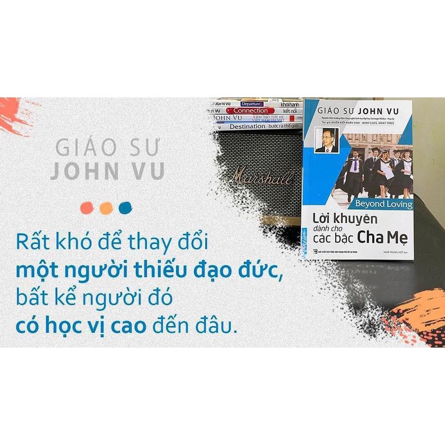 - LỜI KHUYÊN DÀNH CHO CÁC BẬC CHA MẸ Lời khuyên dành cho các bậc Cha Mẹ - Beyond Loving là quyển sách tiếp theo trong bộ sách chắp cánh cho tuổi trẻ Việt Nam của Giáo sư John Vu. Quyển sách được hình thành từ những bài viết hướng dẫn cho sinh viên trên trang blog của giáo sư John Vu (). Qua đó, giáo sư chia sẻ tầm nhìn, kinh nghiệm và những lời khuyên dành cho thế hệ trẻ, thông qua việc trả lời những câu hỏi hay thư gửi đến ông từ học sinh, sinh viên, các thầy cô và cả các bậc cha mẹ trong những năm qua. Quan điểm chung của giáo sư John Vu về giáo dục là sự toàn diện xuyên suốt, phải bắt đầu từ rất sớm và từ cách nhìn nhận đúng đắn của cha mẹ về Giáo dục toàn diện. Theo giáo sư John Vu, ngày nay, tư tưởng cả đời chỉ làm một công việc trong một công ty đã hoàn toàn lỗi thời và chẳng bao lâu nữa, nhiều công việc sẽ được máy móc thông minh thực hiện, con người sẽ không có khả năng kiếm được việc làm chừng nào họ chưa có các kỹ năng phù hợp mà thị trường đang có nhu cầu – và chưa nói đến, nhu cầu của thị trường luôn thay đổi mỗi ngày. Do đó, hơn bao giờ hết, cha mẹ cần có hiểu biết đúng đắn về giáo dục kỹ năng và nhân cách, phải giúp con hình thành thói quen xem học tập là hành trình trọn đời. Trên hành trình đó, các con sẽ không ngừng học hỏi bất kỳ điều gì thị trường cần và đáp ứng những trông đợi từ xã hội về trách nhiệm của một công dân thời đại toàn cầu hóa.