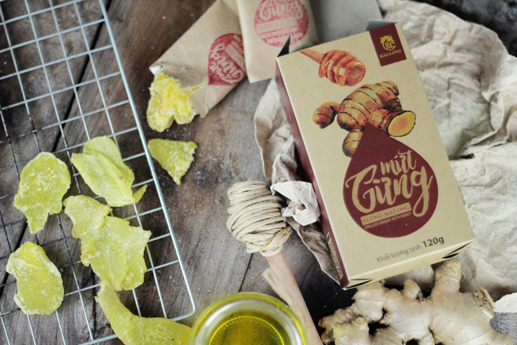 - Được đóng gói nhỏ gọn, tiện lợi sử dụng trong gia đình hoặc mang đi du lịch, dã ngoại. Mứt Gừng Nướng Mật Ong Hải Long (120g)