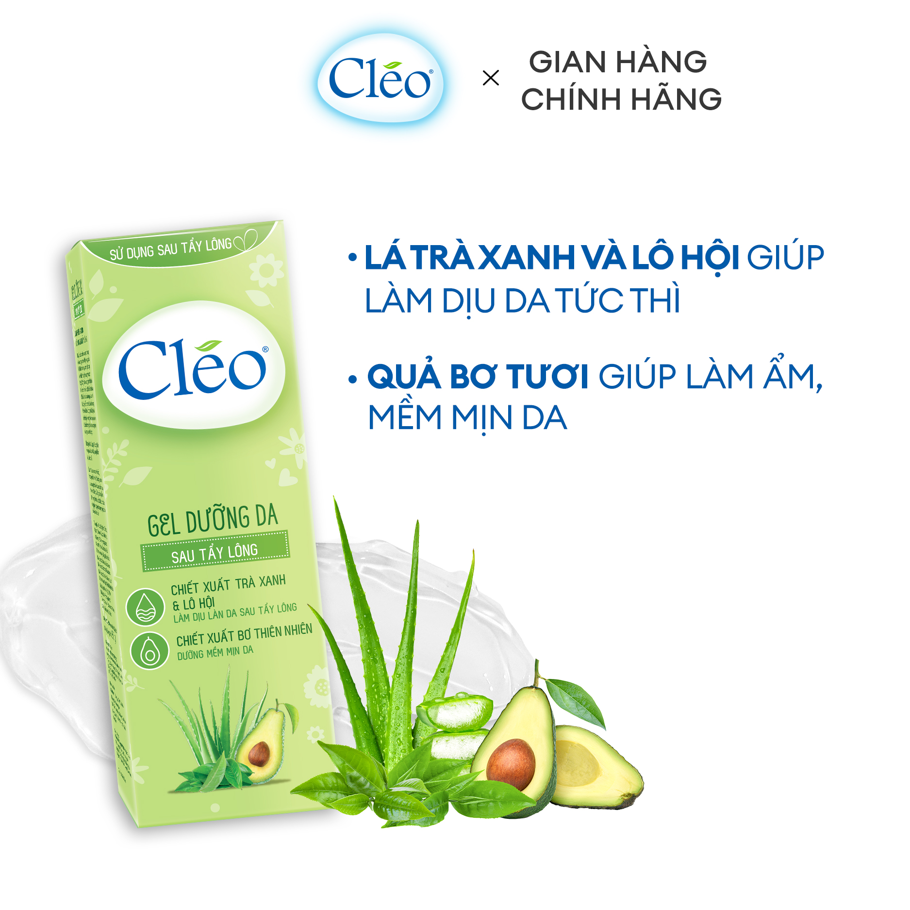 Gel dưỡng da sau tẩy lông Cléo giúp mịn màng da và làm dịu da tức thì 50g