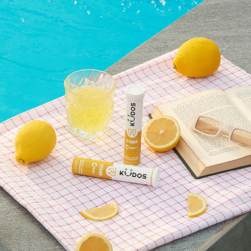 - Viên Sủi KUDOS VITAMIN C 1000MG Trong mỗi viên sủi 4,1 g chứa: Vitamin C (Acid L-ascorbic): 1000 mg Đối tượng sử dụng: Người lớn và trẻ em từ 14 tuổi trở lên có nhu cầu bổ sung vitamin. Hướng dẫn sử dụng: Dùng 1 viên mỗi ngày, hòa tan trong một cốc nước (200 ml) Bảo quản: Bảo quản dưới 25oC ở nơi khô ráo và đậy nắp kín Chú ý: • Thực phẩm này không phải là thuốc, không có tác dụng thay thế thuốc chữa bệnh. • Không dùng cho người mẫn cảm, kiêng kỵ với bất cứ thành phần nào của sản phẩm. • Phụ nữ có thai, đang cho con bú, người bị viêm loét dạ dày, tá tràng, nên tham khảo ý kiến bác sĩ, chuyên gia y tế trước khi dùng. • Không dùng quá liều khuyến nghị hàng ngày. • Không phù hợp cho trẻ em dưới 14 tuổi. Để xa tầm tay trẻ nhỏ. • Không dùng sản phẩm sau ngày hết hạn. • Sản phẩm là thực phẩm bảo vệ sức khỏe chứa vitamin, khoáng chất và chất tạo ngọt. • Thực phẩm bảo vệ sức khỏe không thay thế cho chế độ ăn uống đa dạng cân bằng và lối sống lành mạnh. • Sản phẩm không chứa lactose, gluten và thân thiện với người ăn chay. Thời hạn sử dụng: 36 tháng kể từ ngày sản xuất NSX, HSD: Xem “MFD” và “EXP” ở đáy tuýp. Xuất xứ: Đức