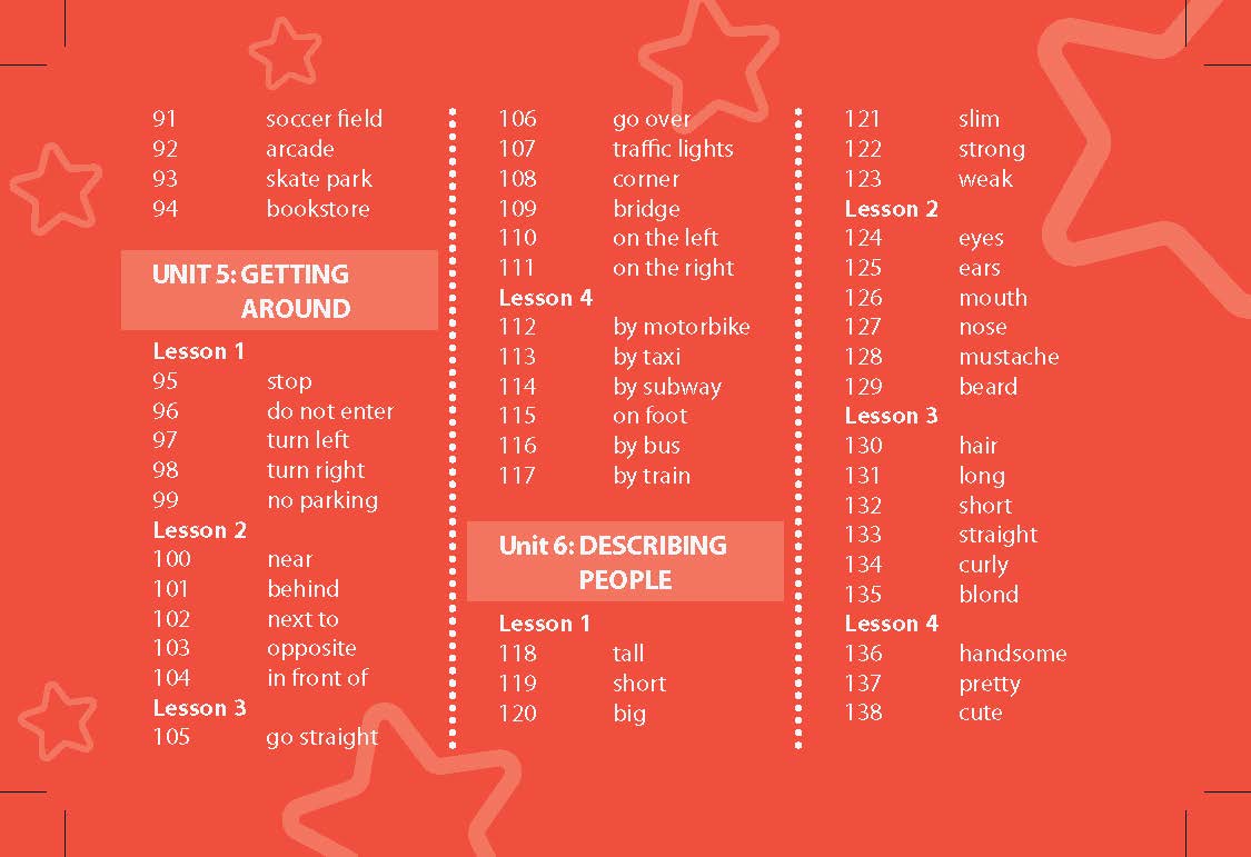 Sách: Learning English 5 - Dành Cho Học Sinh Lớp 5 NỘI DUNG VÀ CẤU TRÚC CỦA QUYỂN SÁCH : Bảng mục lục: Chỉ rõ các mục tiêu chính và trọng tâm của mỗi bài