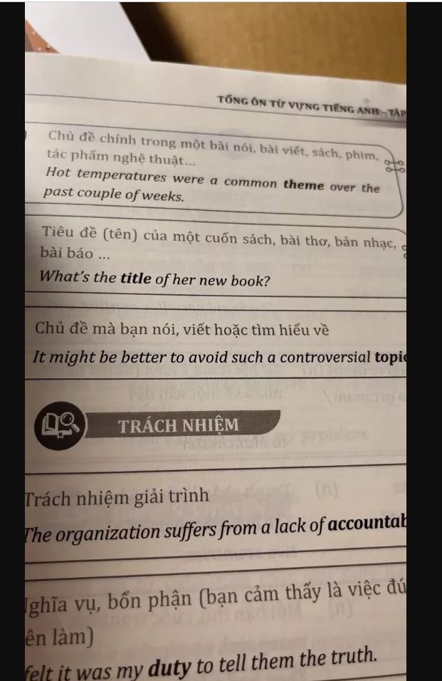- Tập 2: gồm có 8 chủ đề: kết hợp từ, thành ngữ, cụm động từ, giới từ, đồng nghĩa – trái nghĩa, đục lỗ, một từ ba nghĩa, sắp xếp câu tạo thành đoạn văn. Đa phần các chủ đề trong bộ sách này đều có bảng hệ thống từ vựng – cấu trúc – cụm từ. Hơn thế nữa, với việc bao quát toàn bộ các chủ điểm từ vựng trong tiếng Anh từ mức độ cơ bản đến nâng cao cùng với một số lượng lớn câu hỏi bài tập từ vựng thực hành có lời giải chi tiết kèm video chữa, bộ sách này chắc chắn sẽ là tư liệu tham khảo bổ ích cho các sĩ tử để chuẩn bị tốt cho các kì thi.