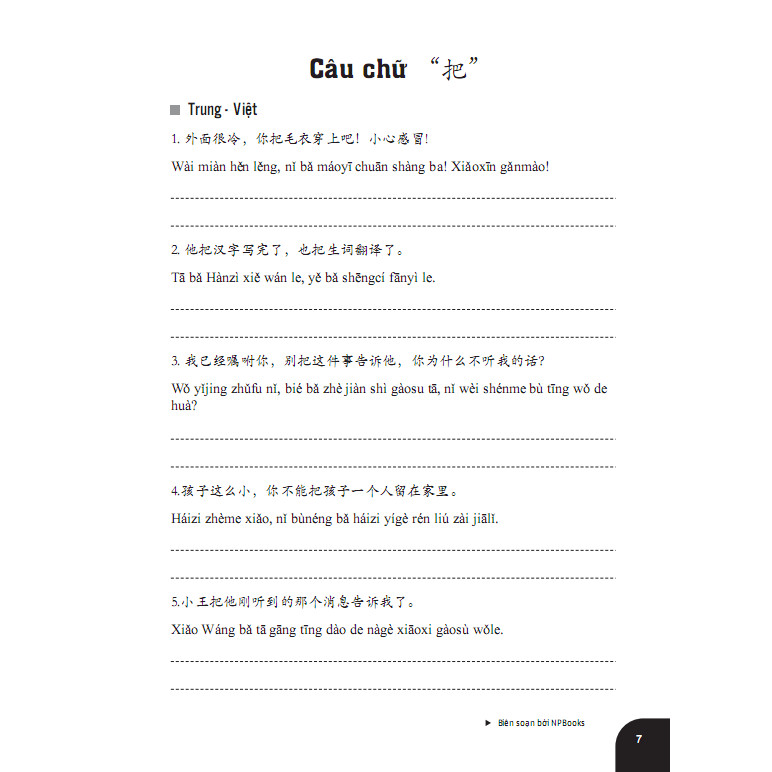 1.BÀI TẬP DỊCH TRUNG VIỆT-VIỆT TRUNG CỦNG CỐ CẤU TRÚC CỐ ĐỊNH & NGỮ PHÁP (Dựa theo ngữ pháp tiếng Hán Sơ trung cấp hiện đại" Loại bìa Bìa mềm Số trang 340 SKU