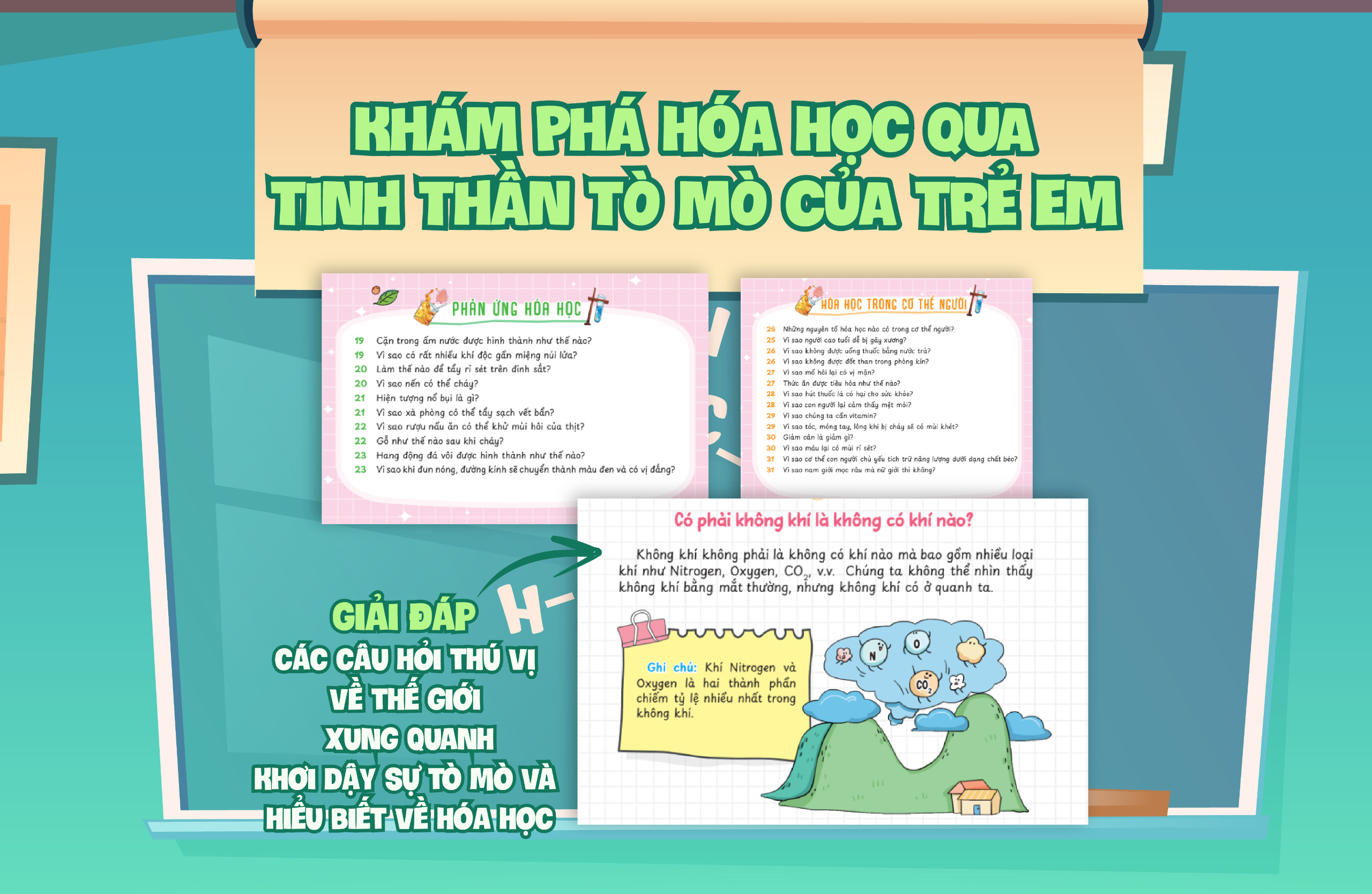 Bộ sách tuyển chọn câu hỏi mà trẻ em tò mò nhất với tiêu trí thú vị , thần kỳ , mới mẻ , đặc sắc . Trong cuốn sách có lời giải thích khoa