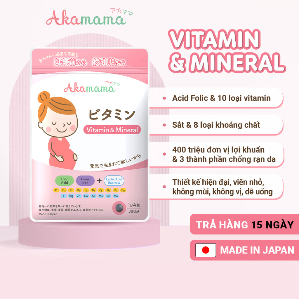 Giới thiệu Vitamin tổng hợp Akamama là sản phẩm được nhiều mẹ bầu tin dùng để bổ sung đầy đủ các vitamin và khoáng chất cần thiết cho cả mẹ và bé trong suốt thai