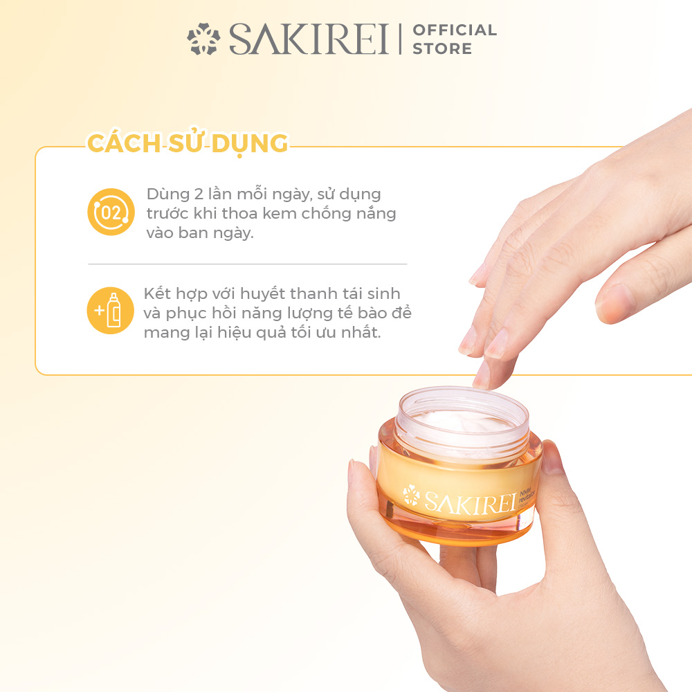 KEM TẾ DƯỠNG DA NMN Sakirei NMN Revitalize Cream Sakirei NMN Revitalize Cream với công thức chứa phức hợP NMN, tế bào thực vật, Tranexamic Acid, Niacinamide,... có tác dụng dưỡng da toàn diện như cấp ẩm, dưỡng sáng, giảm thâm sạm, khắc phục các dấu hiệu lão hóa.