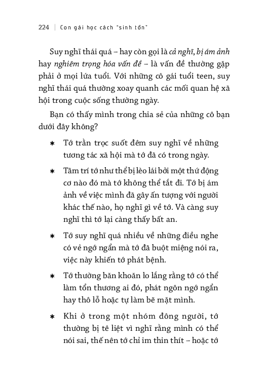 Ngoài ra, các bậc phụ huynh hoàn toàn có thể yên tâm rằng những thông tin bổ ích và hướng dẫn tỉ mỉ của quyển sách sẽ giúp các cô bé tuổi teen luôn đi đúng hướng và có được những quyết định an toàn trong giao tiếp xã hội.