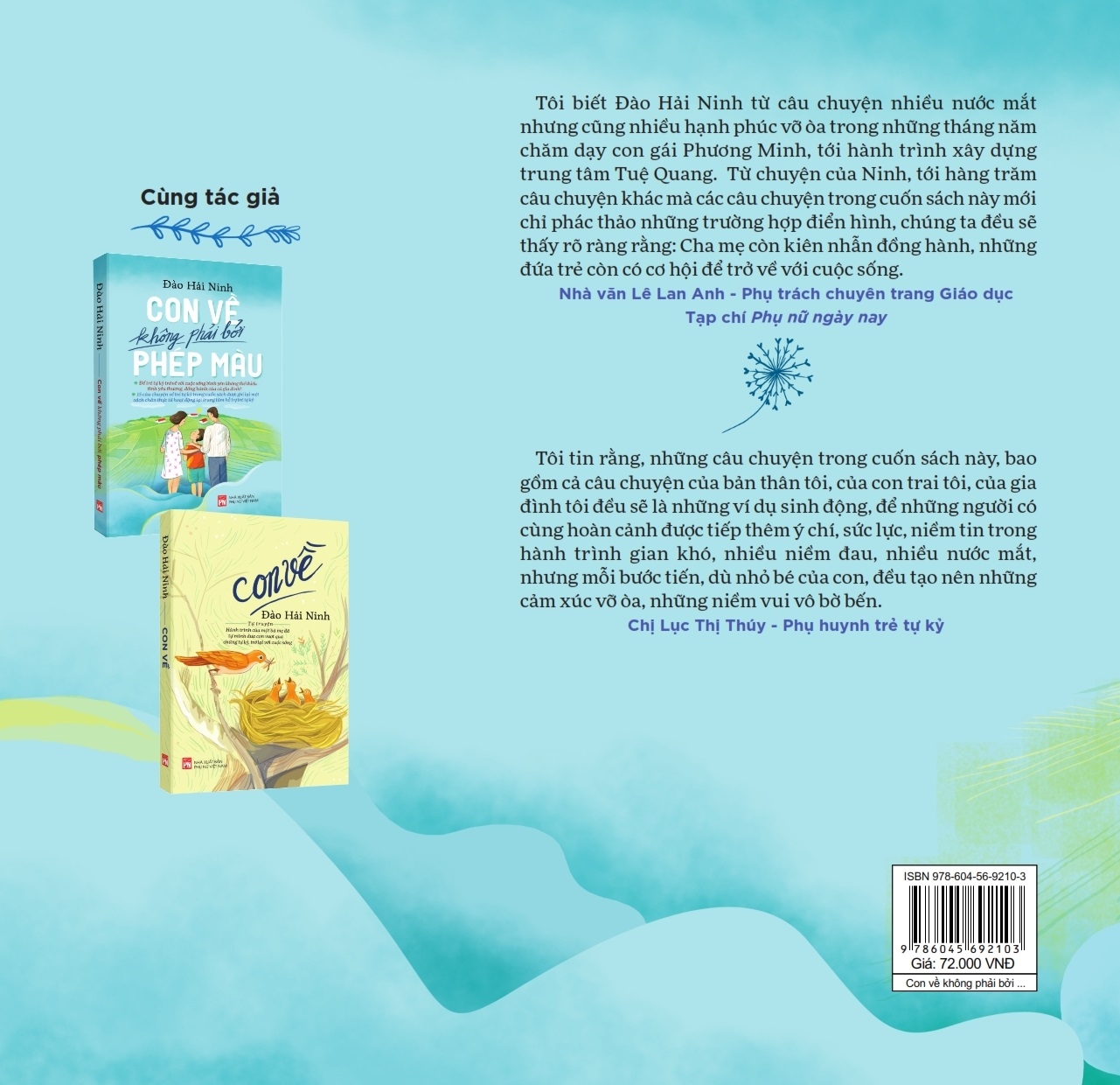 Đừng buông!   Tôi biết Đào Hải Ninh từ câu chuyện nhiều nước mắt nhưng cũng nhiều hạnh phúc vỡ oà trong những tháng năm chăm dạy con gái Phương Minh, tới hành trình xây dựng trung tâm Tuệ Quang. Từ chuyện của Ninh, tới hàng trăm câu chuyện khác mà các câu chuyện trong cuốn sách này mới chỉ phác thảo những trường hợp điển hình, chúng ta đều sẽ thấy rõ ràng rằng: Cha mẹ còn kiên nhẫn đồng hành, những đứa trẻ còn có cơ hội để trở về với cuộc sống.   Bình thường.   Bình yên.   Luôn luôn là như vậy.   Bạn sẽ lại gặp nhiều nước mắt, cả vì đau đớn tột cùng lẫn vỡ oà hạnh phúc. Sau tất cả, chỉ có niềm tin, sự kiên trì và tình yêu thương con trẻ vô bờ bến, mới giúp chính chúng ta tìm lại cuộc đời mình, tìm lại tương lai cho những đứa trẻ, cũng là tương lai của chính mình – tươi sáng hơn, ấm áp hơn, tràn đầy hạnh phúc vô bờ bến.   Không đi thì làm sao đến?   Đi giữa chừng cũng chả thể đến.   Đích đến luôn ở phía trước, chỉ cần bạn đừng dừng chân…