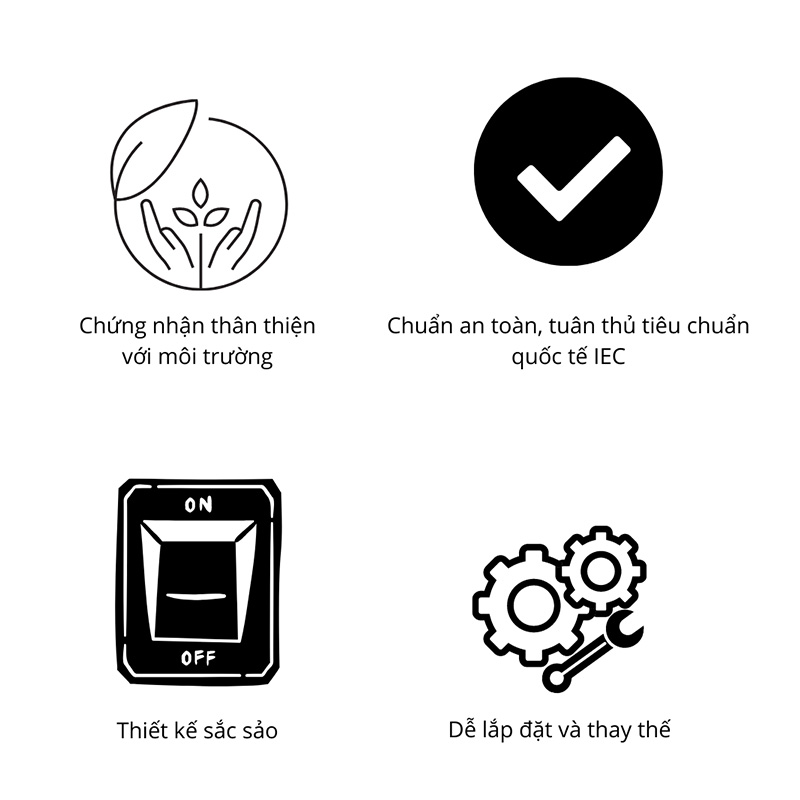 Chuẩn an toàn: Tất cả các ổ cắm AvatarOn A đều tuân thủ tiêu chuẩn quốc tế IEC, đạt chứng nhận sản phẩm thân thiện với môi trường (theo chỉ thị ROHS, Reach, Green Premium)