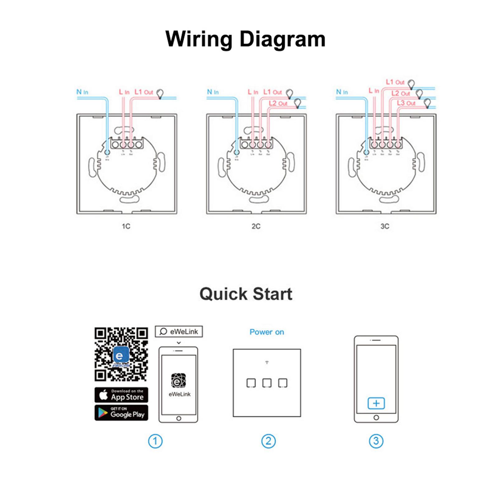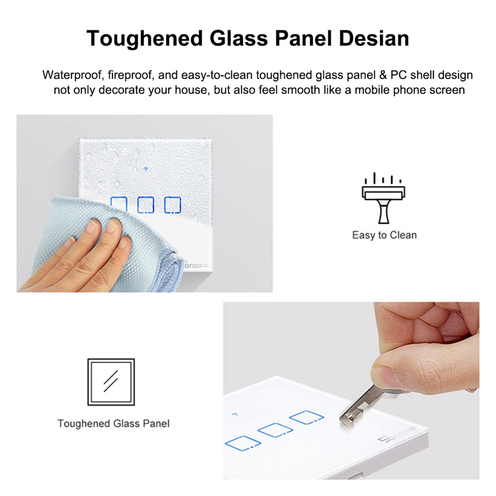 The WiFi smart switch can be controlled remotely using your phone, and devices connected with switches can work independently. Sonoff T1 supports 433MHz remote controller (not included) to control. Works with Amazon Alexa and Google Assistant which let you turn on or off your appliances with a voice command, perfect for those need to handle much housework simultaneously. Features sensitive touch buttons that are attached on the simple and stylish switches to ensure a modern and nice decoration on any wall surface. A slight tap for easier control. Set a time for devices and the switches will help you turn on or off them automatically. Tailor smart scene for your appliances. simply set an event to happen to trigger one SONOFF device or groups of devices with a tap on your phone. Compatible with IFTTT function, the switch can communicate with a slew of devices and services, to trigger them on or off.