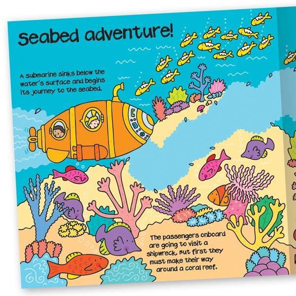 Convertible Submarine Convertible Submarine is a fun storybook for ages 3+ that can also be used as a playmat and a sit-in vehicle for toddlers. Once unfolded, parent and child can read the text, which describes an exciting journey to a shipwreck in a submarine. The bright, busy illustrations are packed with colourful details such as tropical fish and lost treasure. Laid on the floor, the book can also be used as a playmat. The boards can then be refolded into a large, sturdy submarine that a child can sit in and pretend to drive. Convertible Submarine is the perfect playbook for toddlers aged 3+ years to read, play and pretend to drive a submarine into the deep ocean! Fun, underwater adventure story for your child to enjoy Folds into a submarine for your child to play inside Wonderful illustrations by Simon Abbott, packed full of charming details