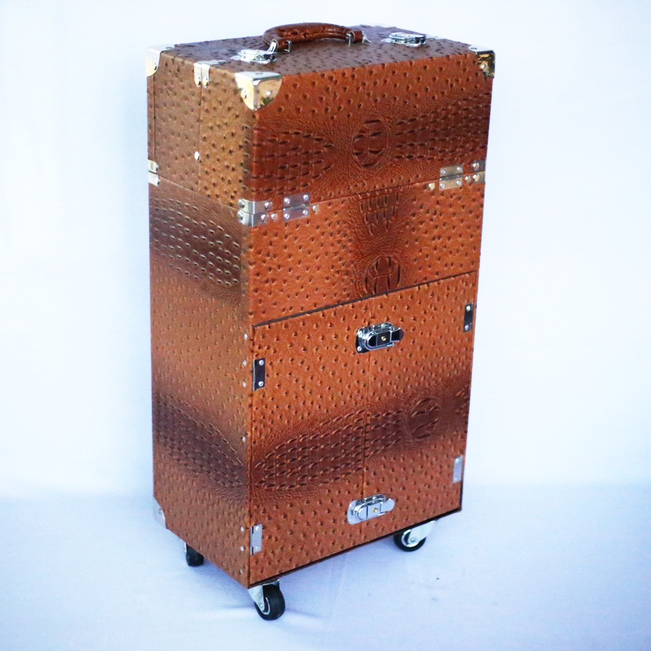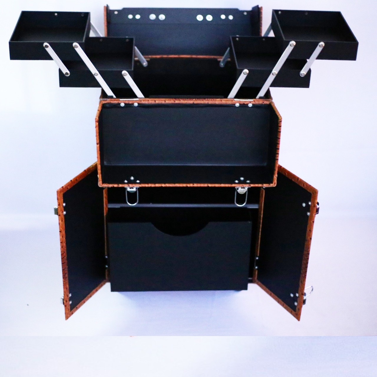 Cốp vali kéo tích hợp tay kéo và bánh xe thuận tiện di chuyển, đựng mỹ phẩm, make up trang điểm, dụng cụ phun xăm, nối mi chuyên nghiệp cao cấp với kích thước lớn, size to và xinh xắn, phù hợp cho các bạn học trang điểm, thợ trang điểm chuyên nghiệp với tính chất công việc buộc phải di chuyển đi xa thường xuyên.