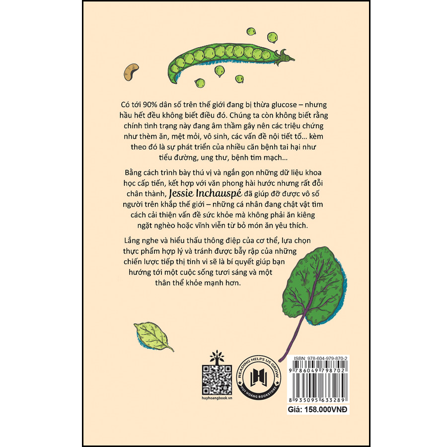 Bằng cách trình bày thú vị và ngắn gọn những dữ liệu khoa học cấp tiến, kết hợp với văn phong hài hước nhưng rất đỗi chân thành, Jessie Inchauspé đã giúp đỡ được vô số người trên khắp thế giới – những cá nhân đang chật vật tìm cách cải thiện vấn đề sức khỏe mà không phải ăn kiêng ngặt nghèo hoặc vĩnh viễn từ bỏ món ăn yêu thích.