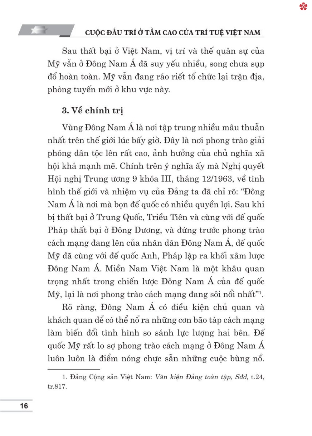 Cuốn sách “Cuộc đấu trí ở tầm cao của trí tuệ Việt Nam” của Giáo sư Trần Nhâm. Nội dung cuốn sách luận giải, phân tích tư duy, trí tuệ của Đảng ta trong khoa