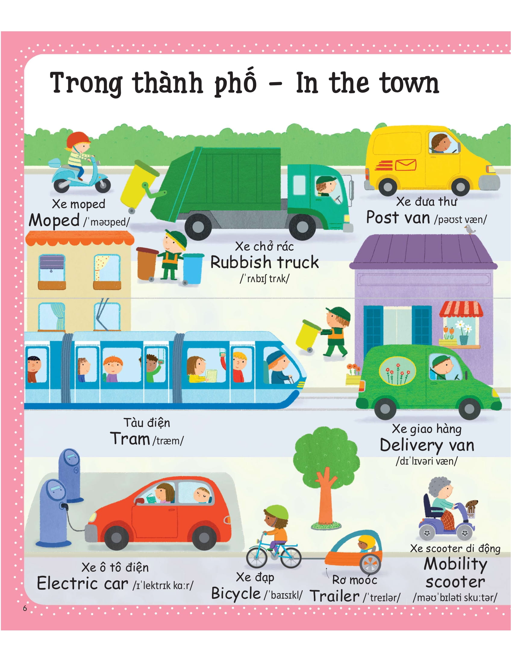 Một thế giới đầy ắp những từ vựng hấp dẫn về thiên nhiên, cuộc sống đang chờ bé yêu khám phá qua bộ "Cuốn sách từ vựng đầu tiên của tôi" gồm 6 cuốn với 6 chủ đề: Những từ vựng đầu tiên - My first words, Nông trại - Farm, Phương tiện giao thông - Vehicles, Trường học - School, Thức ăn - Food , Thiên nhiên - Nature.