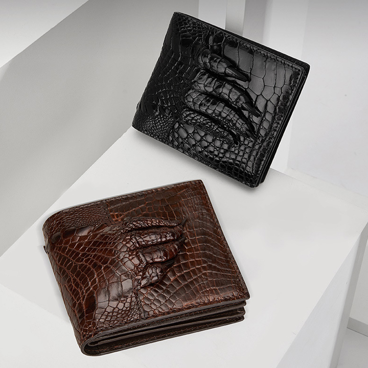 Bóp Da Cá Sấu 2 Mặt Bàn Tay Cá Sấu Màu Đen - Ví Nam Da Cá Sấu 2 Mặt Có Khoá Kéo Cao Cấp Dáng Ngang Thời Trang
