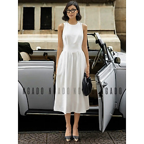 ✨Đầm trắng xoè cổ tròn sát nách NGADO , đầm nữ , Đầm xòe nữ sát nách