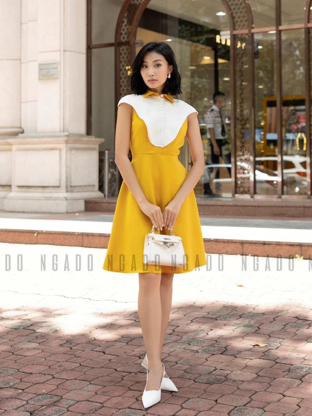 ✨Đầm vàng tay con NGADO , đầm ngắn dự tiệc , đầm dạo phố