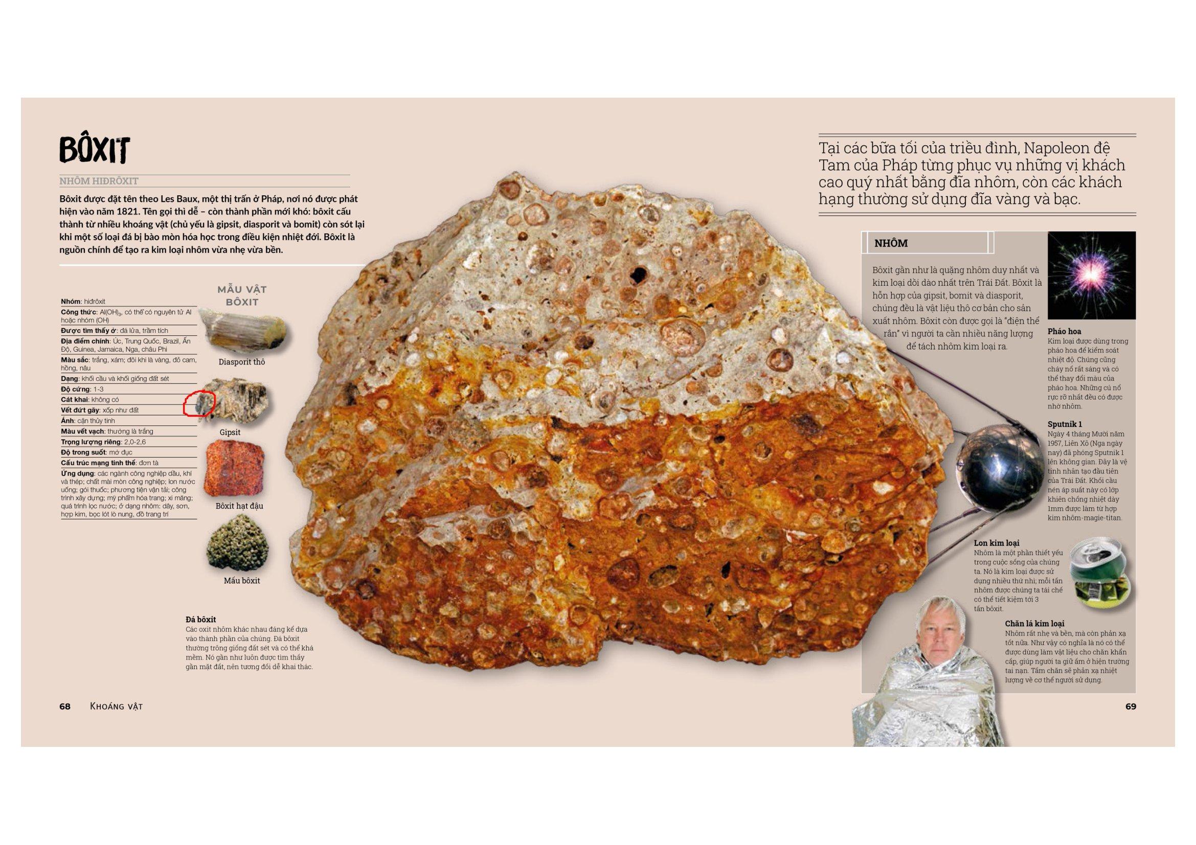 Trong cuốn sách này, tập trung tìm hiểu 3 chủ đề chính: KHOÁNG SẢN – ĐÁ – ĐÁ QUÝ, Mỗi chủ đề lại được phân tách và đi vào chi tiết của từng loại:KHOÁNG SẢN: Ở chủ đề này, các bạn sẽ được đi tham quan phòng trưng bày khoáng sản ( đồng/than chì/sắt/vàng/bạc…) Bạn sẽ biết chúng chính là phần còn lại của thiên thạch đến từ vùng không gian giữa các hành tinh bay vào khí quyển, bị cháy mất một phần và rơi xuống bề mặt Trái Đất. Ngoài ra, khám phá thông tin và các kiến thức bổ ích của 10+ khoáng chất khác, biết được khoáng vật tạo đá cấu thành nên 60% vỏ Trái Đất, nó gần như có mặt ở khắp mọi nơi trên vỏ Trái Đất hay tinh thể có cấu trúc tốt thường được dùng làm đá quý hay giả kim cương…