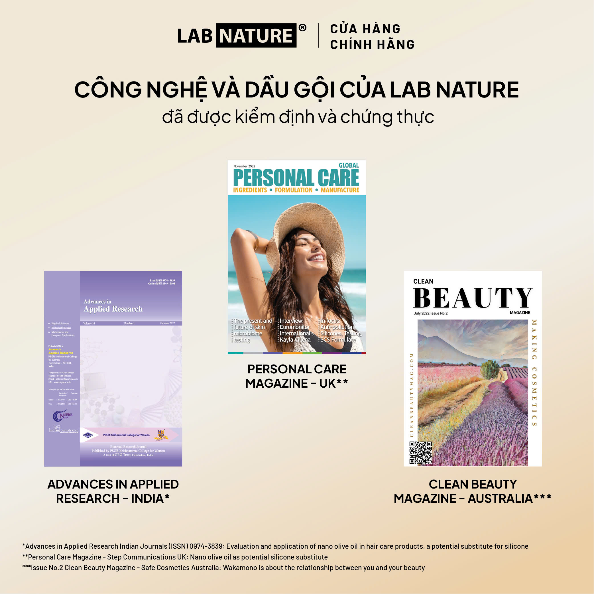 Dầu gội Lab Nature nhận được sự tin tưởng và đưa tin từ các đơn vị truyền thông uy tín trong và ngoài nước: Advances in Applied Research Ấn Độ, Clean Beauty Managazine (Úc), Personal Care Magazine (Anh), VnExpress, Dân Trí, Tuổi Trẻ, Sức Khỏe & đời sống, Thanh Niên, Vietnamnet, Zingnews và Kênh 14,…
