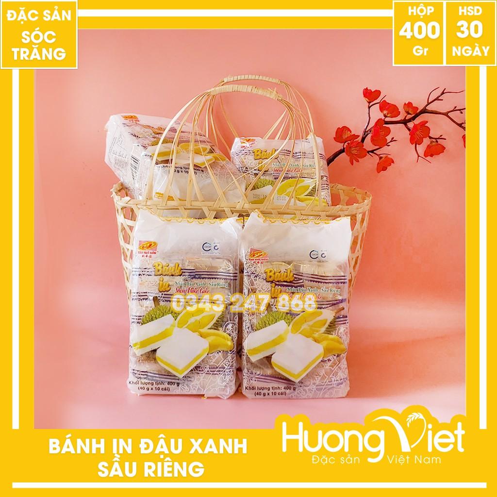 ✨Đặc Sản Sóc Trăng - Bánh In Đậu Xanh Sầu Riêng Tân Huê Viên Túi 10 Bánh 400G, Đặc Sản Bánh In Sóc Trăng Nhân Đậu Xanh, Sầu Riêng