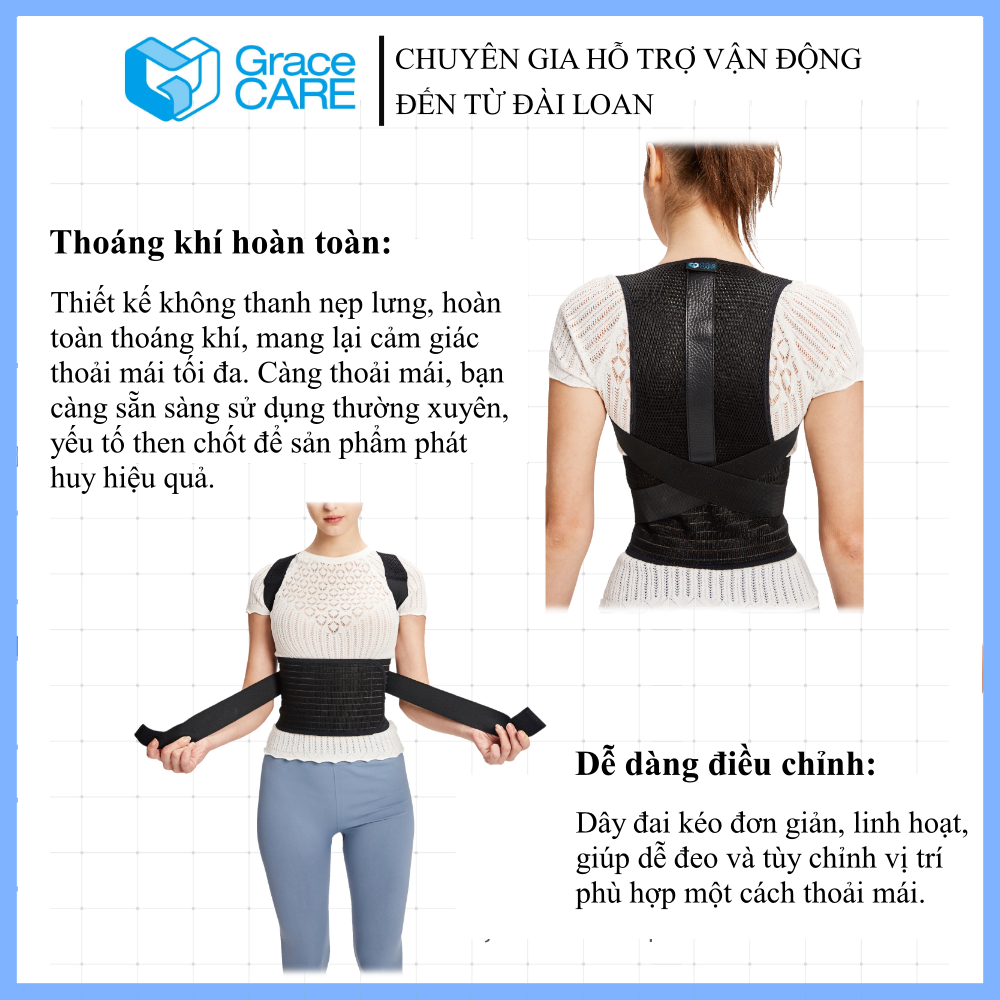 ✨Đai Chống Gù Lưng Grace Care LB224 - Giữ Cột Sống Thẳng, Điều Chình Tư Thế, Phòng Đau Lưng