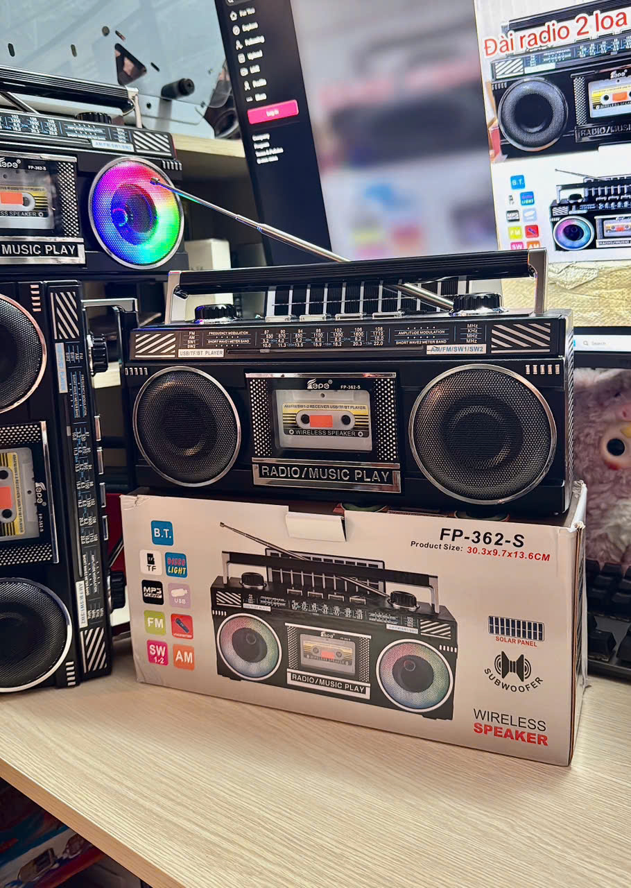 - Chắc hẳn trong mỗi người dân Việt Nam chúng ta ai cũng có những kỷ niệm về chiếc ĐÀI RADIO đây là một lừa chọn hoàn hảo nhất cho chúng ta. .Đài radio FP-362S 2 LOA :đa dạng với nhiều màu sắc Đa dạng với 3 màu sắc:VÀNG -NÂU - ĐEN không chỉ có một màu sắc duy nhất, mà bạn có thể lựa chọn từ 3 tùy chọn khác nhau. Điều này tạo ra sự phong phú và sẽ đáp ứng nhu cầu cá nhân của bạn. Bất kể bạn yêu thích sắc VÀNG nổi bật, hay màu đen sang trọng hoặc màu NÂU trang nhã, đài radio FP-362S sẽ là món đồ nội thất lý tưởng cho không gian của bạn. -Thiết kế ĐẸP tiện lợi: Với kích thước31X10X14 , đài radio đa năng dễ dàng di chuyển và đặt ở bất kỳ vị trí nào trong nhà bạn. Không chiếm quá nhiều không gian, bạn có thể dễ dàng đặt nó trên bàn làm việc, kệ sách, hoặc trên kệ trang trí. -Hiệu suất âm thanh tuyệt vời: Đừng để kích thước làm bạn nhầm lẫn. mang lại hiệu suất âm thanh tốt vượt xa mong đợi. Thưởng thức âm nhạc yêu thích, các chương trình truyền thanh hay các tin tức mới nhất một cách rõ ràng và sống động. -Với những ưu điểm nổi bật này,FM FP-262S thực sự là sự lựa chọn tuyệt vời để bổ sung vào không gian sống của bạn. Hãy lựa chọn một trong ba màu sắc phong cách và trải nghiệm niềm vui từ âm nhạc và thông tin mỗi ngày cùng với đài fmFP-362S. ️ THÔNG SỐ KỸ THUẬT Model : FP-2382-S Bắt sóng Radio kiểu dò tay / điều khiển với băng tần FM / AM / SW / MP3 Sóng : AM : 552- 1710KHz - FM : 87-108 KHz - SW : 5.6 - 22.0MHz Có bluetooth : V5.0 Thiết bị hỗ trợ cổng kết nối TF, USB, AUX Thiết bị được sạc Pin qua cổng Type C, có thể kết nối với máy tính xách tay, máy bàn, hoặc cắm vào củ sạc điện thoại Mỗi lần sạc đầy có thể sử dụng được 5-6 giờ liên tục ( khoản 50% công xuất) Thời gian sử dụng pin: 6-8 giờ Thời gian sạc khoảng 3-4 giờ AC: 110-220V / 60-50HZ DC: TYPE*C 5V - Hoặc Sạc bằng năng lượng mặt trời Kích Thước Hộp : 22 x 7.5 x 14 cm Trọng lượng: 800gr -SP ĐƯỢC BẢO HÀNH LÊN TỚI 12 THÁNG NGUYÊN TEM NGUYÊN HỘP.