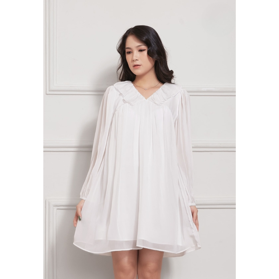 ✨Đầm Babydoll Lụa Crep Cổ Bèo Tay Dài Maxivic, La Mộc - LM012210