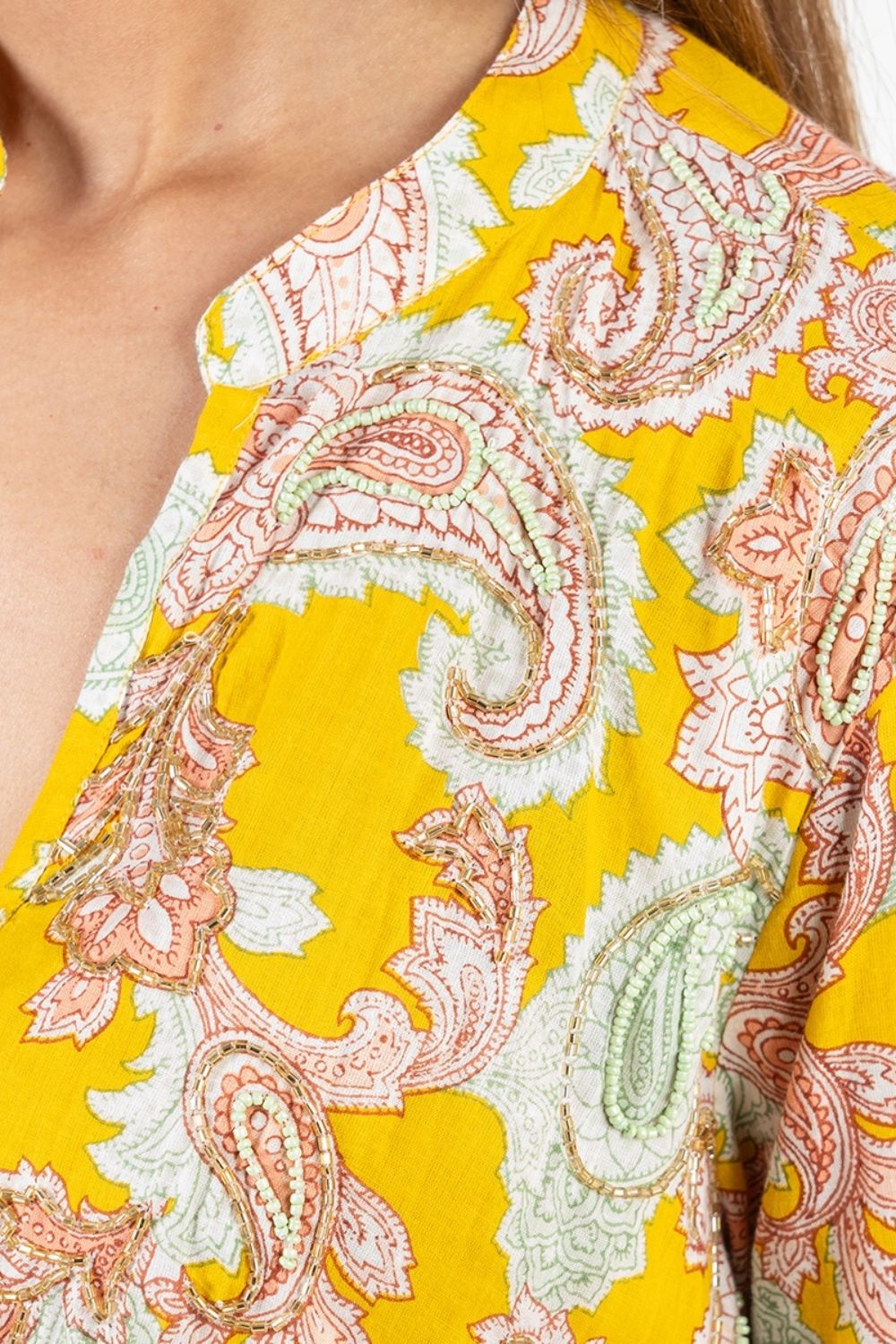 Mua tại TiktokĐầm Boho Kết Cườm Cotton Isla Bonita, chất liệu cotton xô cao cấp, mềm mại. Điểm nhấn ở các hạt kết cườm trước ngực và tua rua màu hồng phối ở tay và chân váy, trên nền vải hoa vàng nổi bật. Phom rộng. Mặc phối với quần short bên trong. Dài đầm 82cm (50x82cm)Phù hợp đi biển, dạo phố, công sở, hoặc dự tiệc. Hướng dẫn sử dụng: Không sử dụng chất tẩy mạnh Giặt ngâm nhẹ tay bằng dầu gội đầu, hoặc để trong túi giặt giặt máy chế độ nhẹ. CHÍNH SÁCH ĐỔI HÀNG Đổi size, đổi kiểu trong vòng 7 ngày, đổi nhiều lần đến khi vừa ý. Vui lòng giữ nguyên tất cả nhãn mác trên sản phẩm và kiểm tra lỗi sản phẩm khi nhận hàng, đảm bảo không bị lỗi trước khi cắt nhãn mác hoặc giặt hàng.