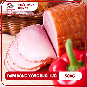 Dăm bông xông khói lưới 500g là sản phẩm được sản xuất từ nguồn nguyên liệu thịt heo tươi ngon, được chọn lọc kỹ lưỡng, xông khói bằng gỗ sồi tự nhiên được nhập khẩu trực tiếp từ châu Âu và được bao quanh bởi lớp lưới đặc biệt. Dăm bông xông khói lưới là món ăn thơm ngon, tiện lợi, cung cấp nhiều chất dinh dưỡng và là nguyên liệu để chế biến nhiều món ăn hấp dẫn khác nhau.