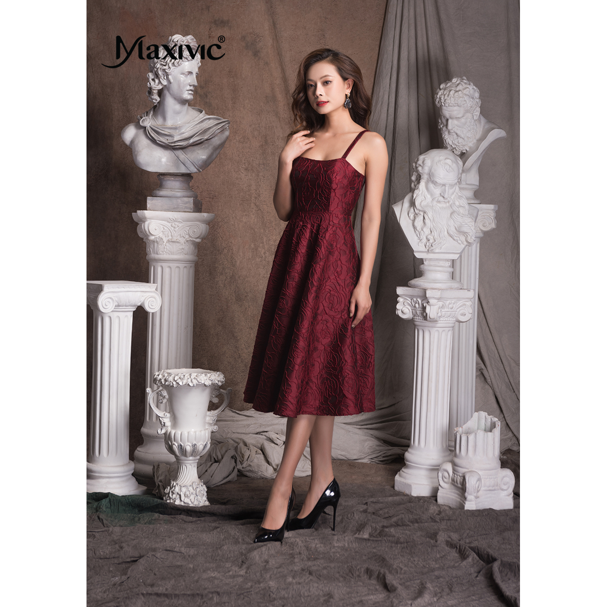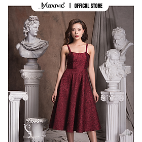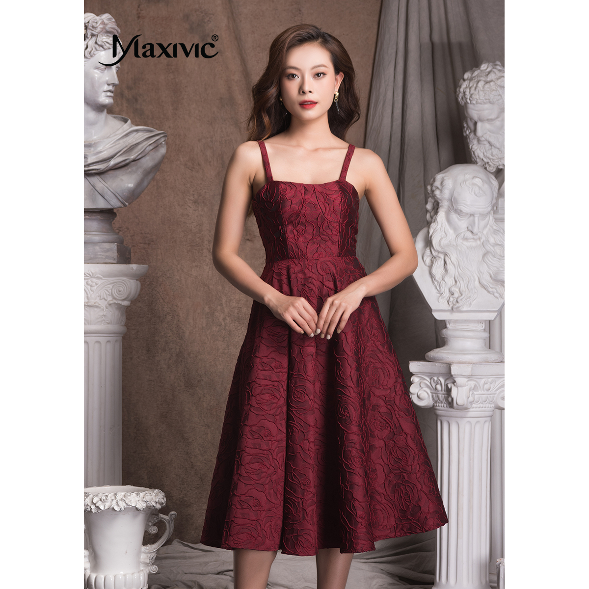 ✨Đầm Dáng Xòe Hai Dây Đỏ Đô Hoa Nổi Maxivic M112204