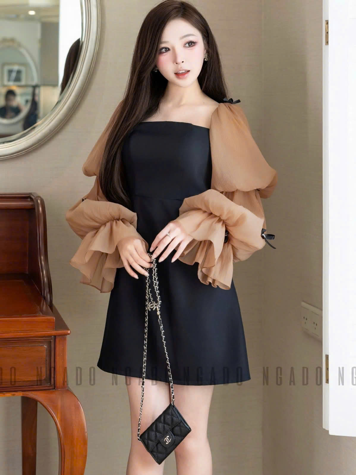 ✨Đầm đen tay voan phồng NGADO , đầm dự tiệc , đầm dạo phố