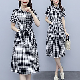 Váy sơ mi kẻ caro phối thêu nơ dễ thương, mang đến vẻ ngoài năng động nhưng vẫn nữ tính. Thiết kế: Dáng suông thoải mái, cổ sơ mi thanh lịch. Điểm nhấn: Họa