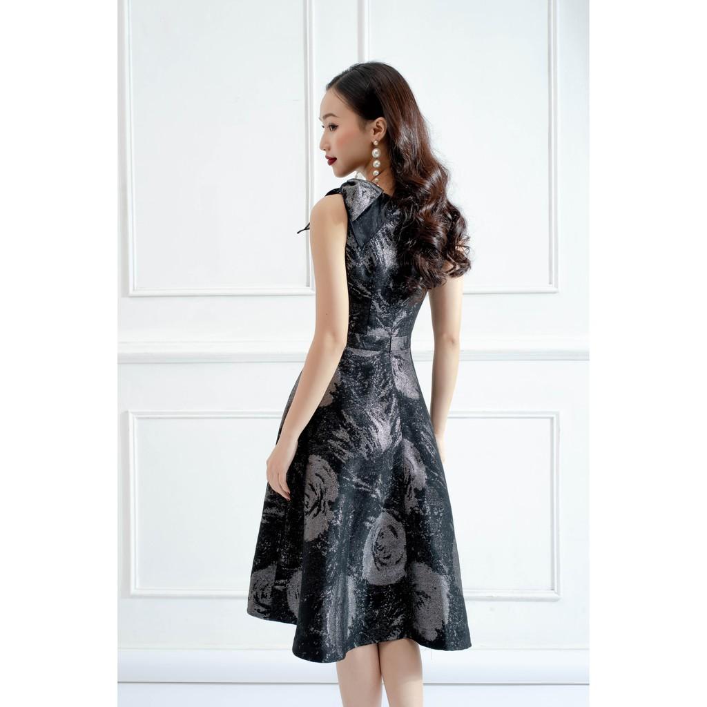 ✨Đầm hoa xòe Mullet Tri'C Luxury phối lưới nơ lệch Đen L020220