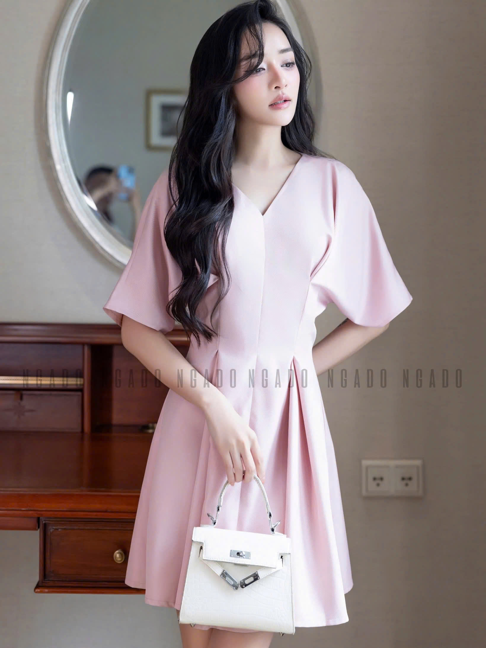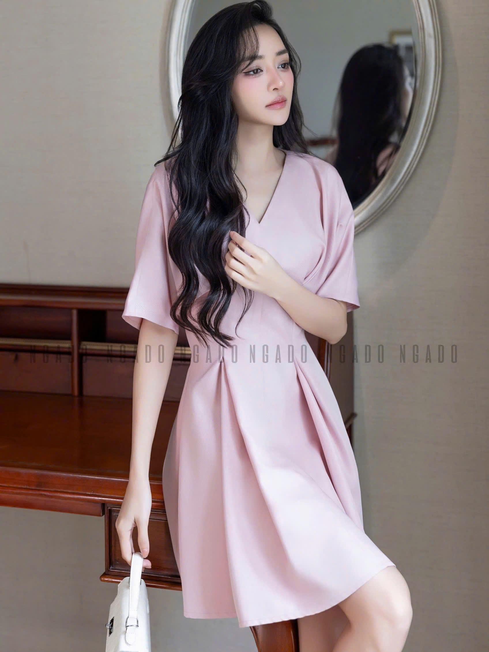 ✨Đầm hồng eo xếp ly NGADO , đầm Nữ , đầm ngắn , đầm công sở , dự tiệc