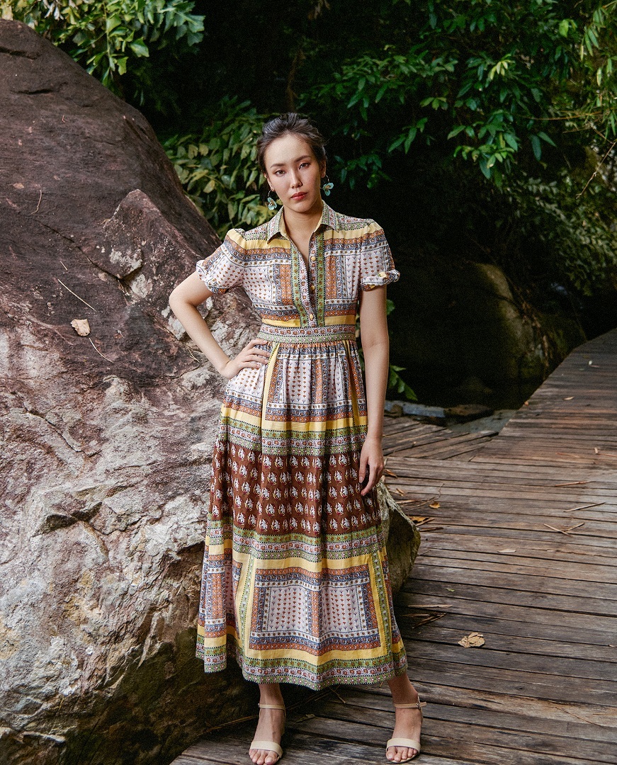 Kiểu dáng đầm dài maxi cổ sơ mi