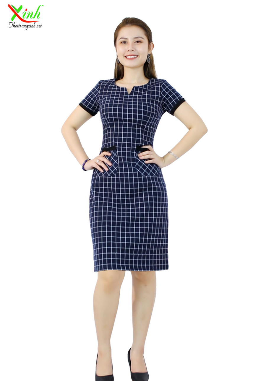 ✨Đầm suông caro công sở ThoiTrangXinh DL299