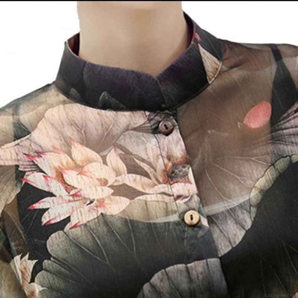 Đầm hoa cổ bẻ trung niên cao cấp