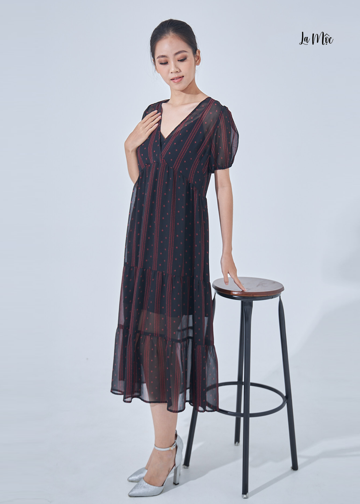- Thông chi tiết sản phẩm Mã sản phẩm: LM0122131 Chất liệu: CHIFFON HÀN QUỐC & LÓT LỤA Size: M, L Màu sắc: y hình, có thể sai lệch đôi chút do ánh sáng và góc chụp. Hình ảnh sản phẩm do La Mộc tự chụp nên khách hàng yên tâm khi lựa chọn. Đặc điểm nổi bật: Đầm voan họa tiết mini sọc đỏ cổ chữ V, tay ngắn viền chun phồng nhẹ. Phần váy dài qua gối nhún bèo 3 tầng nhẹ nhàng, nữ tính cho người mặc. Đầm lót 2 dây: màu đen, cổ chữ V, phần váy ngắn trên gối. Đầm phù hợp cho các buổi tiệc gia đình, đi dạo phố, hẹn hò đều đẹp.