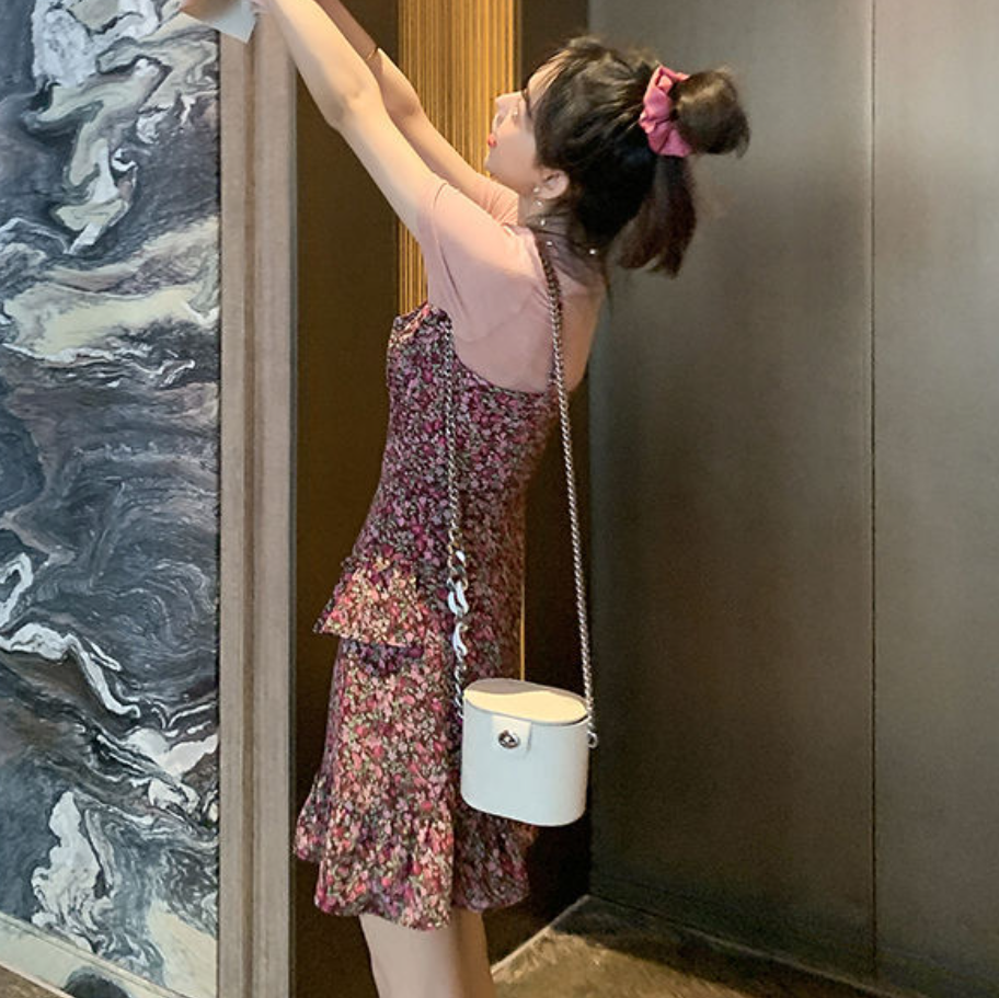 [Ảnh thật/Video] Váy hoa nhí dáng xoè dễ thương, váy 2 dây, váy nữ, váy hoa vintage