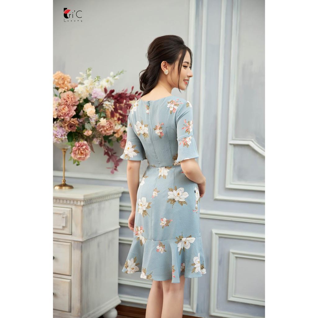✨Đầm xòe đuôi cá Tri'C Luxury rút dây ngực Xanh pastel A20420