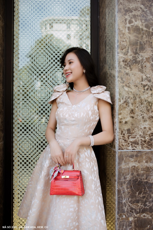 Tỏa sáng với chiếc đầm gấm hoa nổi sang trọng