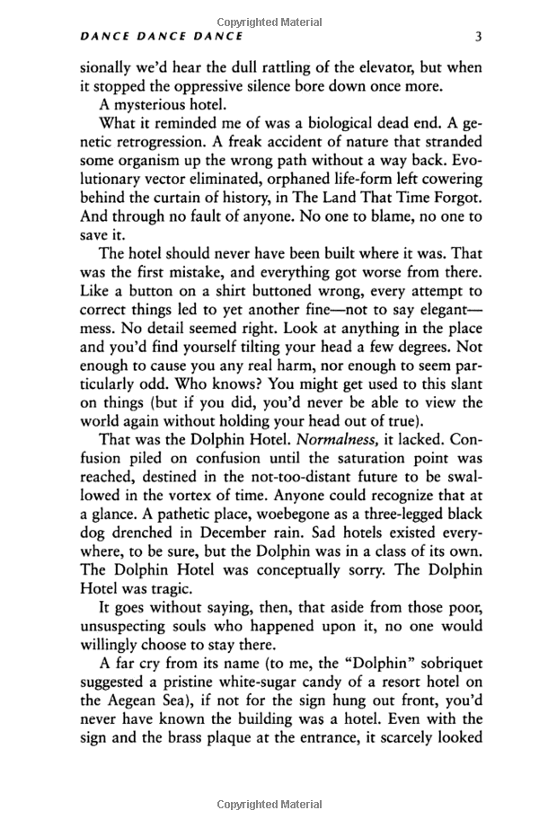High-class call girls billed to Mastercard. A psychic 13-year-old dropout with a passion for Talking Heads. A hunky matinee idol doomed to play dentists and teachers. A one-armed beach-combing poet, an uptight hotel clerk and one very bemused narrator caught in the web of advanced capitalist mayhem. Combine this offbeat cast of characters with Murakami's idiosyncratic prose and out comeDance Dance Dances .