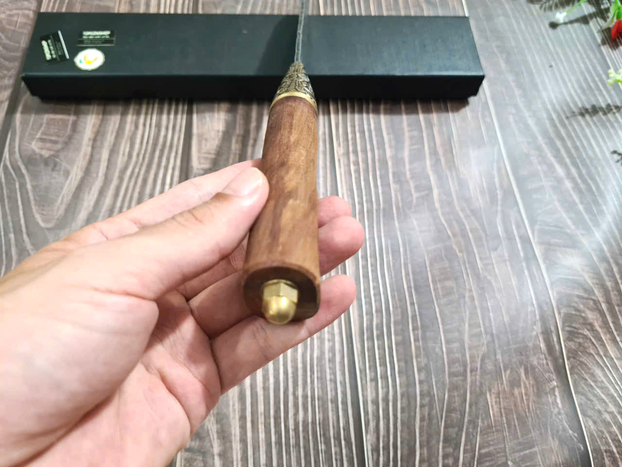 Dao Phúc Sen Dao Bầu 22 Cán Cẩm Khâu Đồng G10D - Kích thước: lưỡi: 20-22cm, cán: 13cm, rộng: 7,5cm, dầy: 1,5ly, trọng lượng: 300g - Chức năng: sử dụng chuyên thái lọc thịt ,cá,
